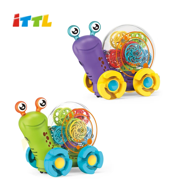 Interactive Cute Snail Car Toy for 6 Months Babies Pull String with Glowing Music and Projection Sensory Toys Made of Plastic